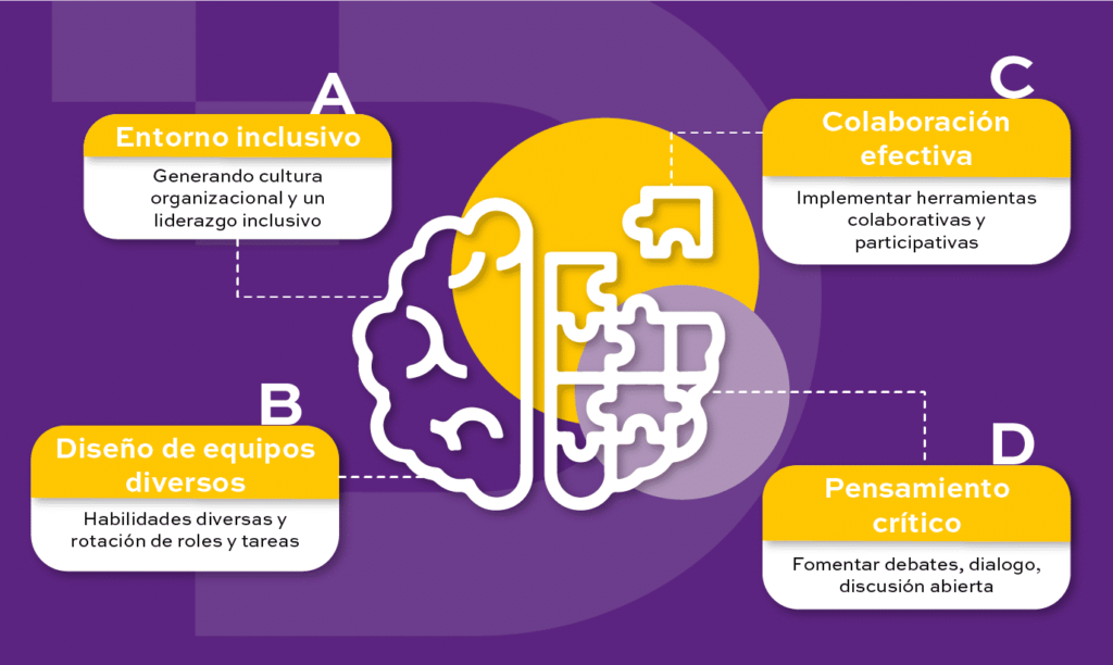 La diversidad de puntos de vista facilita mitigar los sesgos cognitivos que pueden surgir cuando todos los miembros del equipo piensan de manera similar o poseen una consonancia. La diversidad en los equipos puede mejorar la toma de decisiones, promoviendo entre los participantes considerar los diferentes puntos de vista que desafían las suposiciones y promueven un análisis más riguroso de la información disponible (Nemeth, 1995).